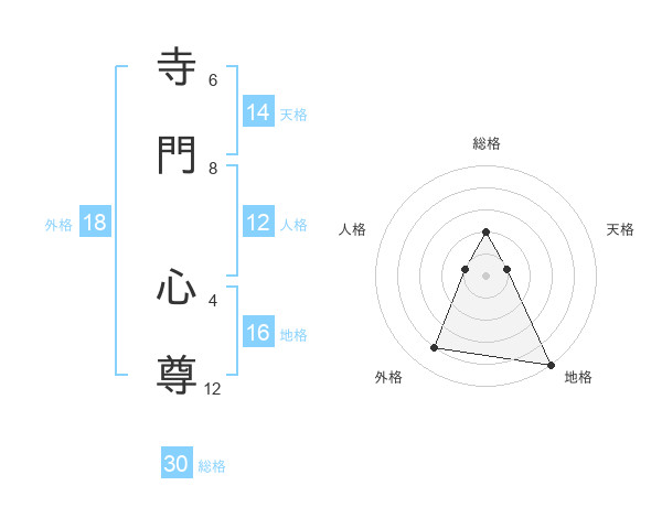 寺門 心尊さんを姓名の画数から五運を鑑定