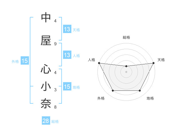 中屋 心小奈さんを姓名の画数から五運を鑑定