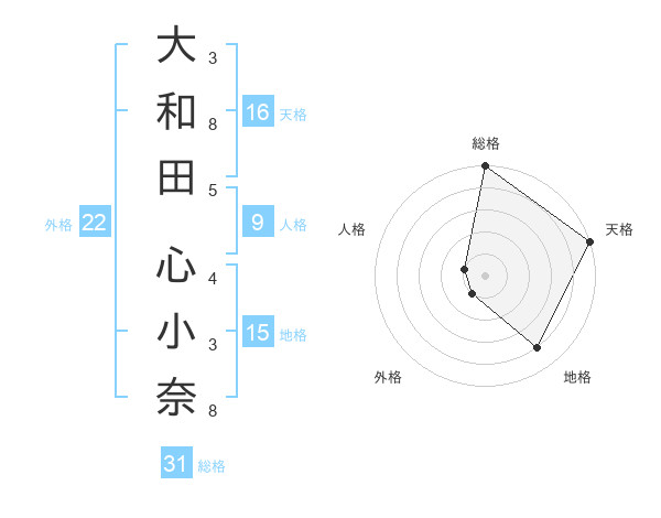 大和田 心小奈さんを姓名の画数から五運を鑑定