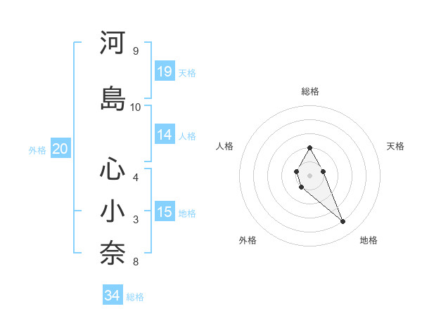 河島 心小奈さんを姓名の画数から五運を鑑定