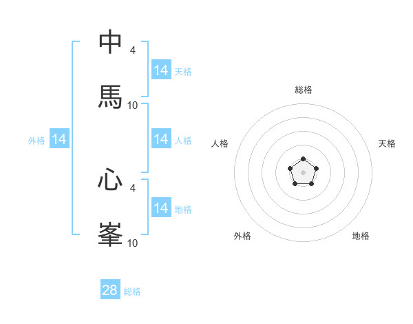 中馬 心峯さんを姓名の画数から五運を鑑定