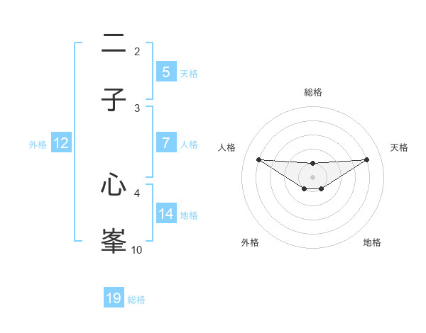 二子 心峯さんの天格は5画の4点!