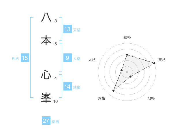 八本 心峯さんの天格は13画の5点!