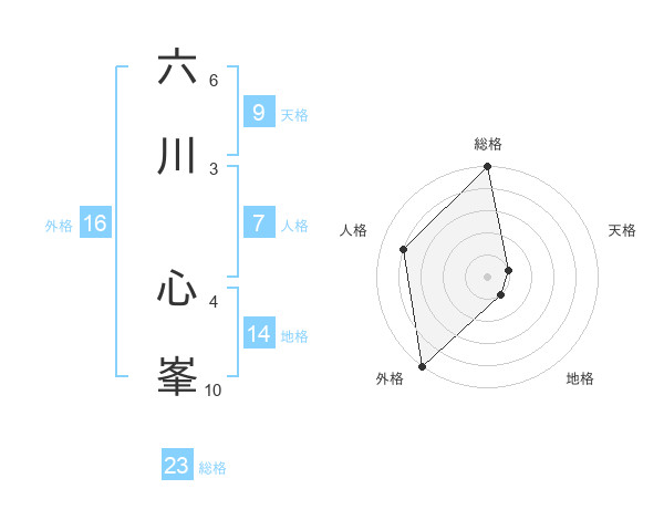 六川 心峯さんの総格は23画の5点!