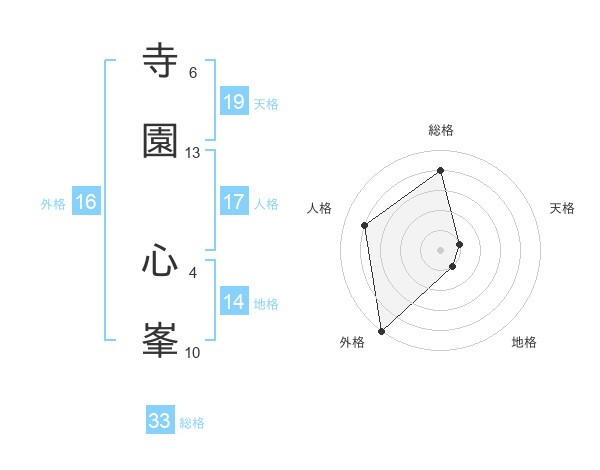 寺園 心峯さんの外格は16画の5点!