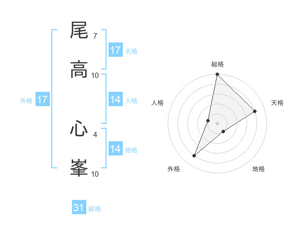 尾高 心峯さんの天格は17画の4点!