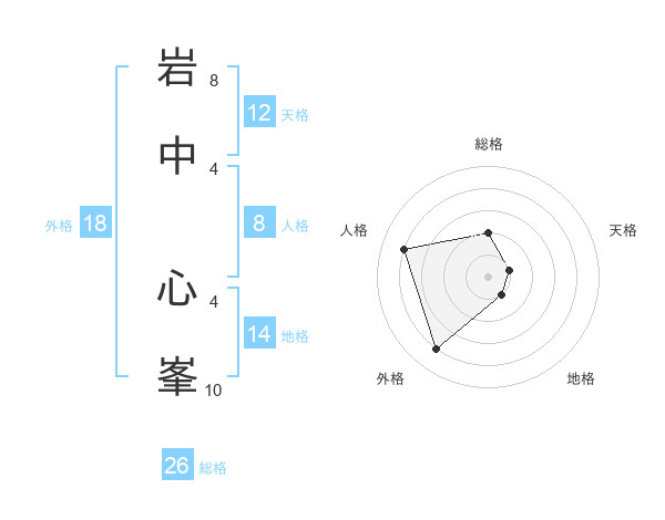 岩中 心峯さんの総格は26画の2点!