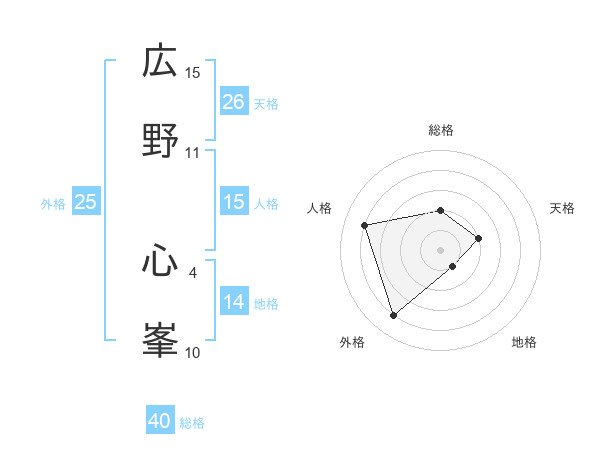 広野 心峯さんの地格は14画の1点!
