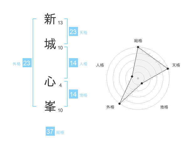 新城 心峯さんの外格は23画の5点!