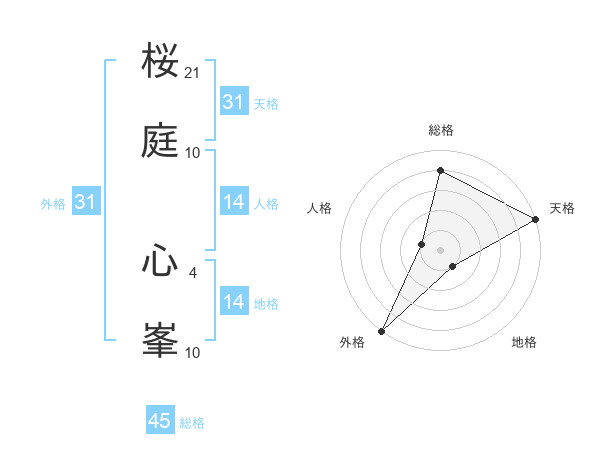 桜庭 心峯さんの外格は31画の5点!