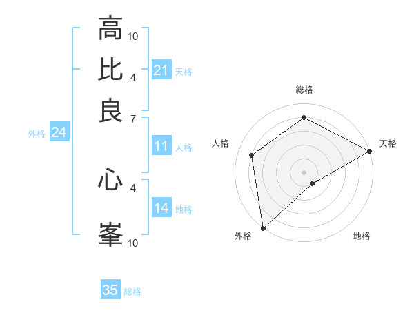 高比良 心峯さんを姓名の画数から五運を鑑定