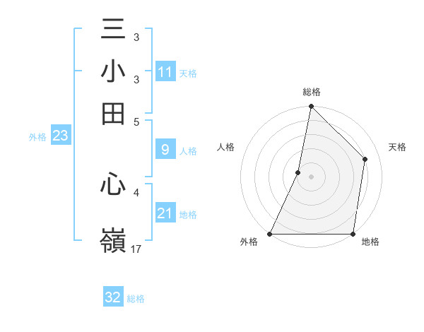 三小田 心嶺さんの総格は32画の5点!