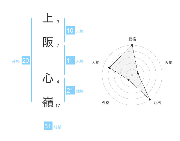 上阪 心嶺さんの総格は31画の5点!