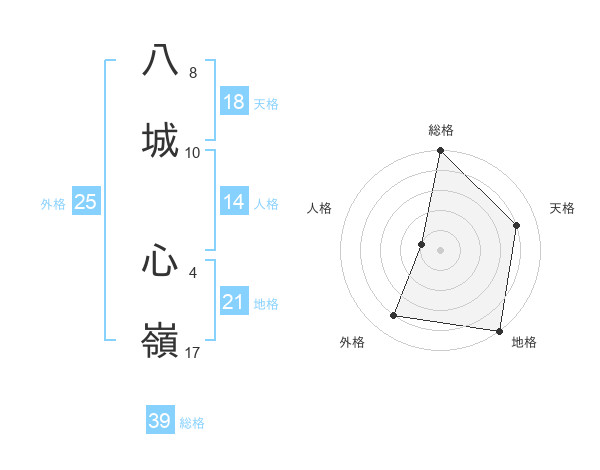 八城 心嶺さんを姓名の画数から五運を鑑定