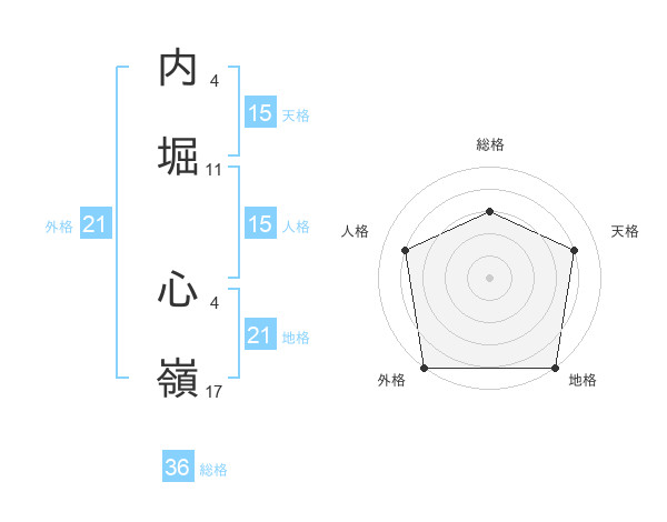 内堀 心嶺さんを姓名の画数から五運を鑑定