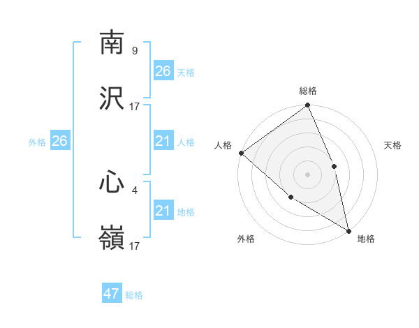 南沢 心嶺さんを姓名の画数から五運を鑑定