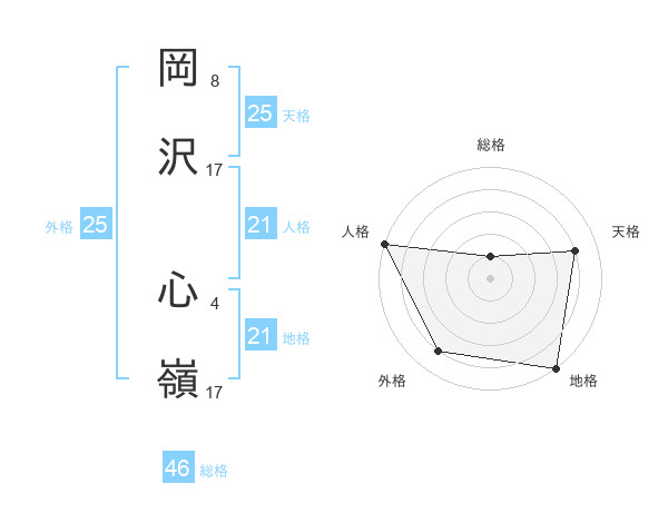 岡沢 心嶺さんの人格は21画の5点!