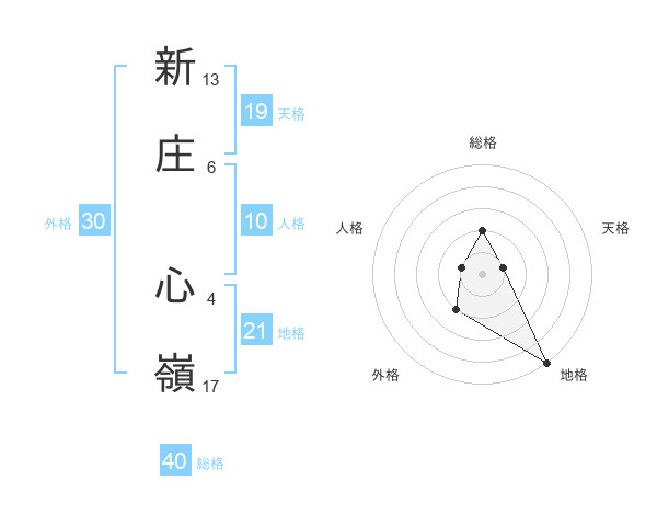 新庄 心嶺さんの総格は40画の2点!