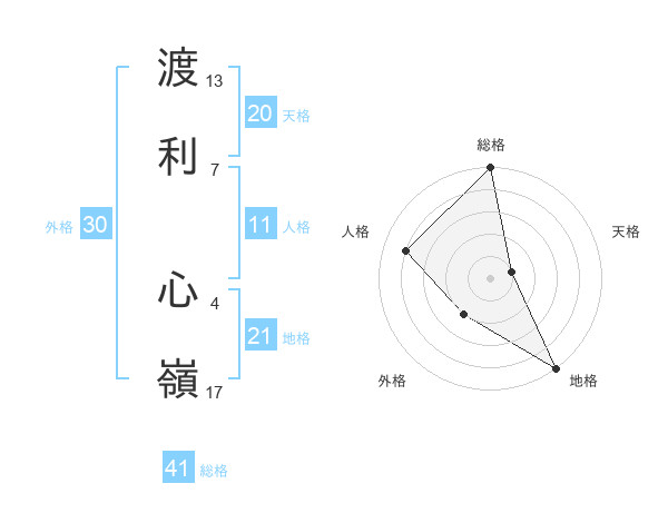 渡利 心嶺さんの総格は41画の5点!