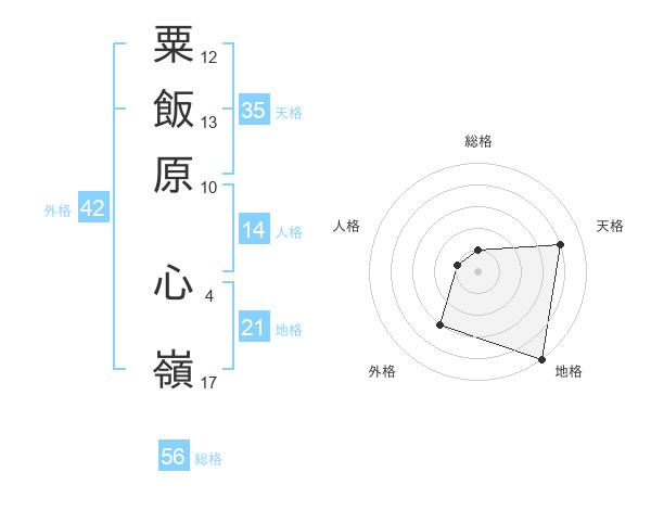 粟飯原 心嶺さんの外格は42画の3点!