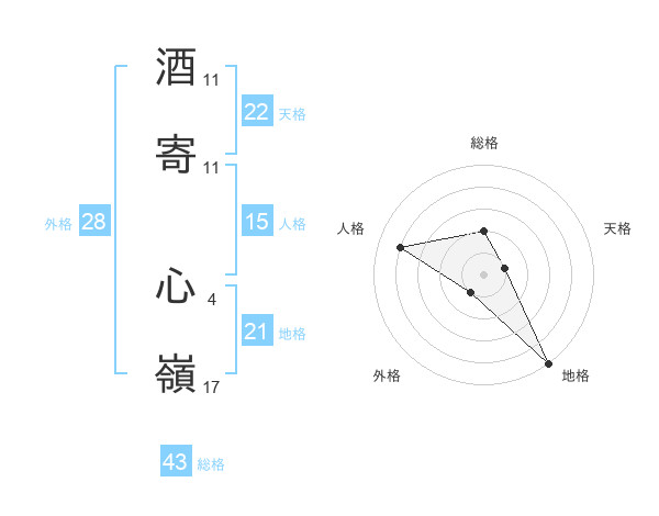 酒寄 心嶺さんの総格は43画の2点!
