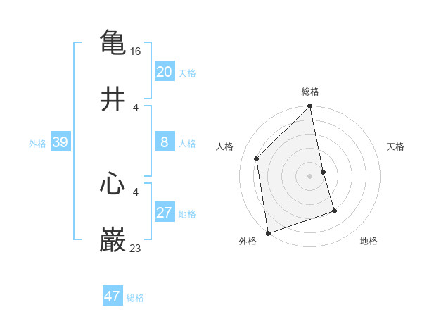 亀井 心巌さんの総格は47画の5点!