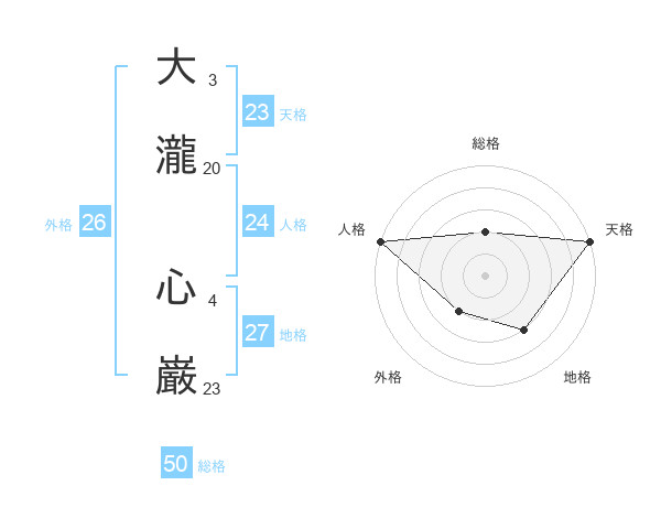 大瀧 心巌さんの天格は23画の5点!