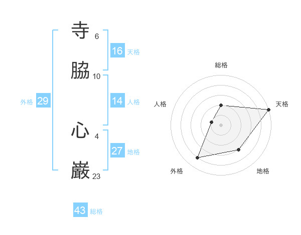 寺脇 心巌さんの天格は16画の5点!