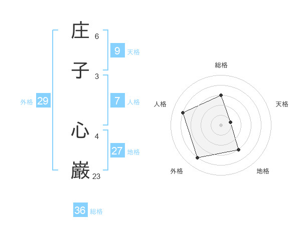 庄子 心巌さんを姓名の画数から五運を鑑定