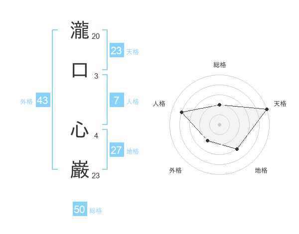 瀧口 心巌さんを姓名の画数から五運を鑑定