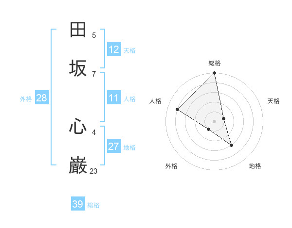 田坂 心巌さんの総格は39画の5点!