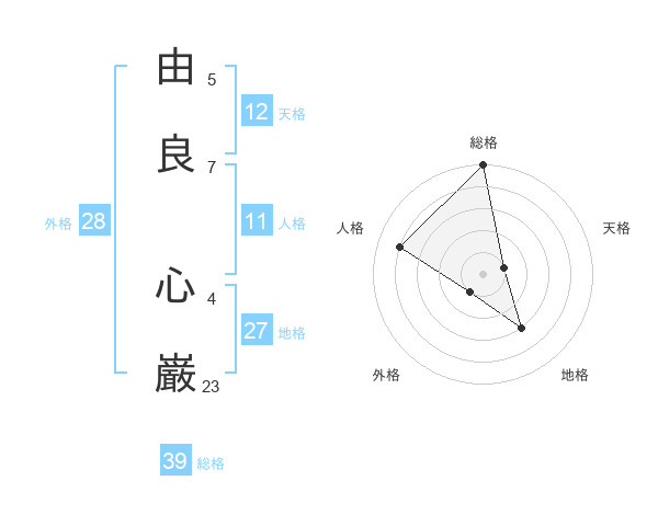 由良 心巌さんの総格は39画の5点