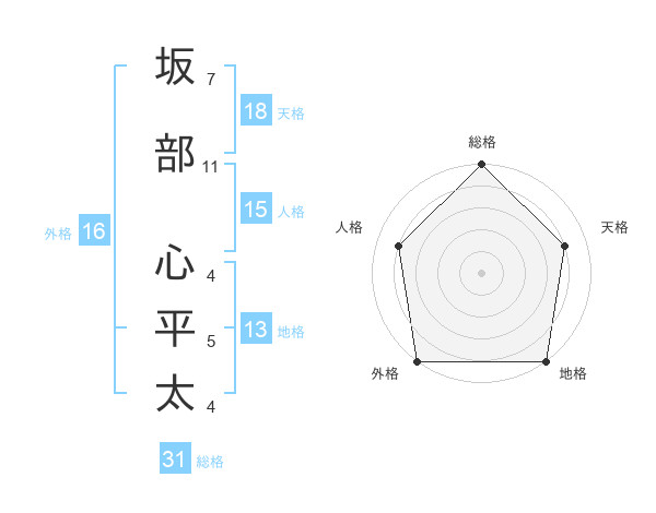 坂部 心平太さんの総格は31画の5点!