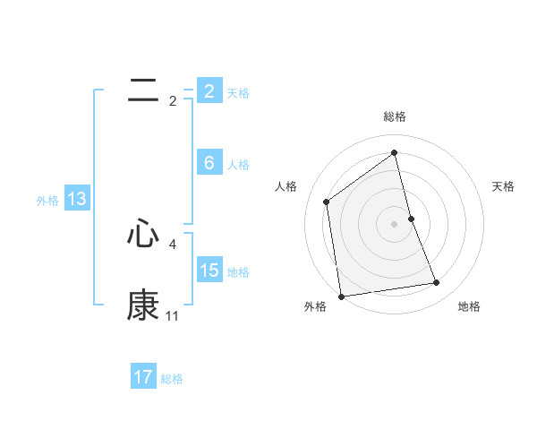 二 心康さんの総格は17画の4点!