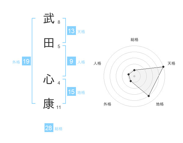 武田 心康さんの天格は13画の5点!