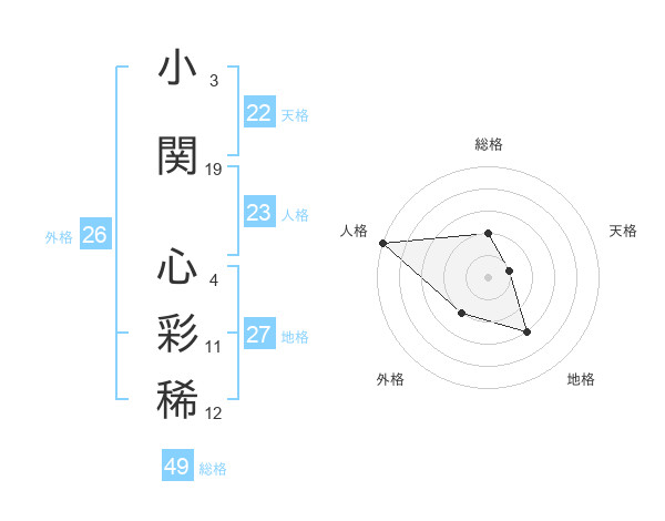 小関 心彩稀さんを姓名の画数から五運を鑑定
