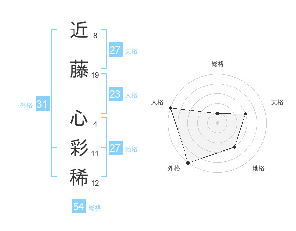 近藤 心彩稀さんを姓名の画数から五運を鑑定