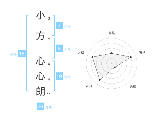小方 心心朗さんを姓名の画数から五運を鑑定