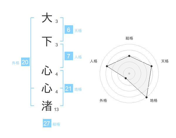 大下 心心渚さんを姓名の画数から五運を鑑定