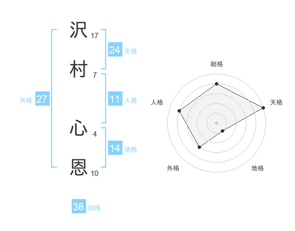 沢村 心恩さんの総格は38画の4点