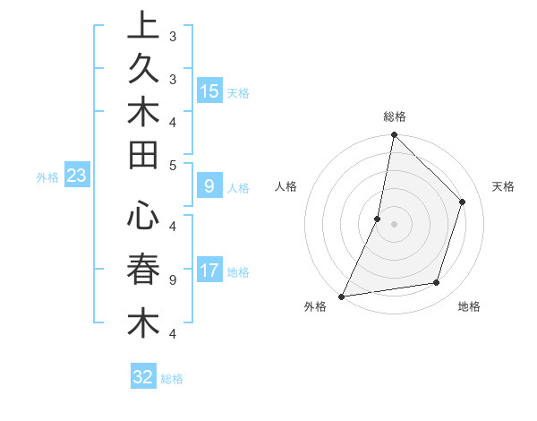 上久木田 心春木さんを姓名の画数から五運を鑑定