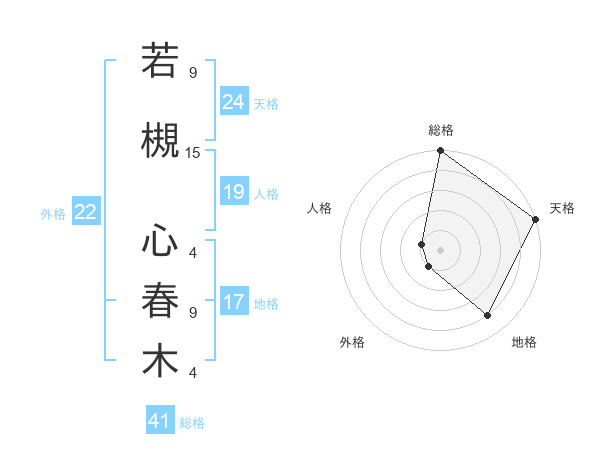 若槻 心春木さんの天格は24画の5点!
