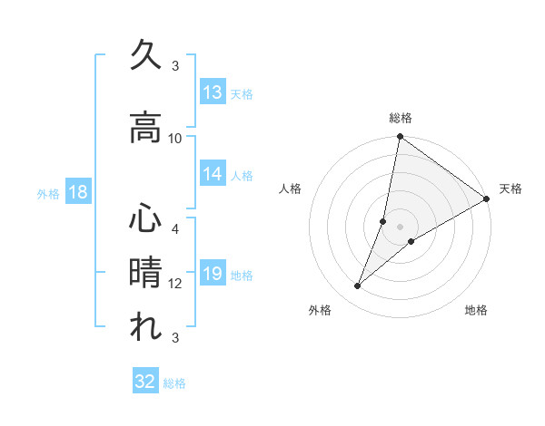 久高 心晴れさんの天格は13画の5点!