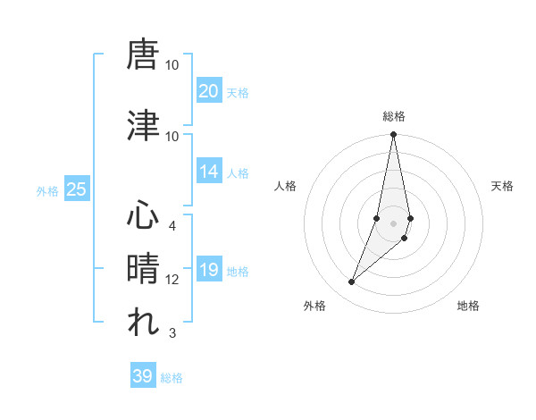 唐津 心晴れさんを姓名の画数から五運を鑑定