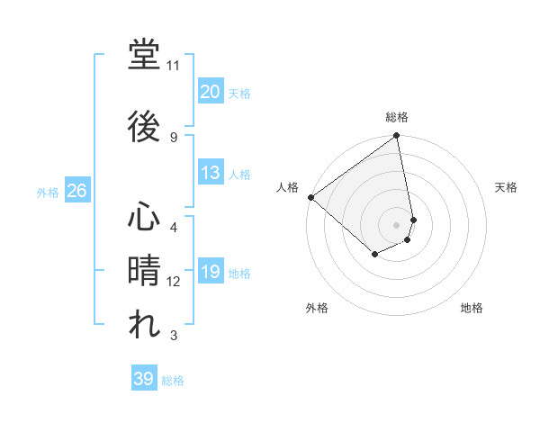 堂後 心晴れさんを姓名の画数から五運を鑑定