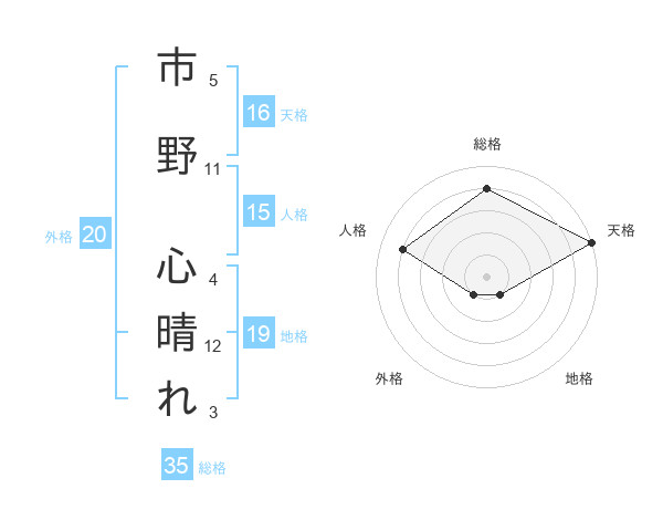 市野 心晴れさんを姓名の画数から五運を鑑定