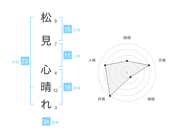 松見 心晴れさんを姓名の画数から五運を鑑定