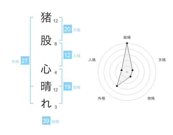 猪股 心晴れさんを姓名の画数から五運を鑑定