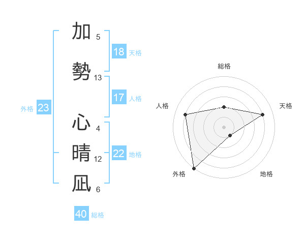 加勢 心晴凪さんの外格は23画の5点!