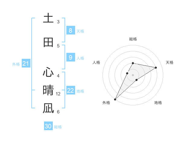 土田 心晴凪さんを姓名の画数から五運を鑑定